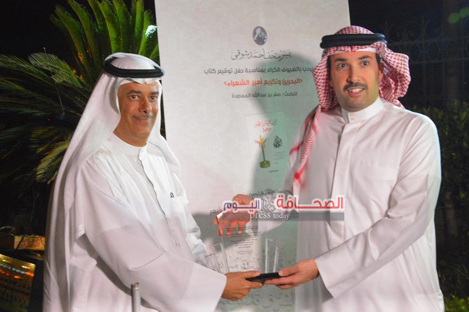 وأقيم خلال الاحتفالية حفل توقيع كتاب ( البحرين وتكريم أمير الشعراء ) للباحث والكاتب البحرينى صقر بن عبد الله المعاودة والكتاب يوثق المشاركة التاريخية لمملكة البحرين فى تكريم أمير الشعراء أحمد شوقى