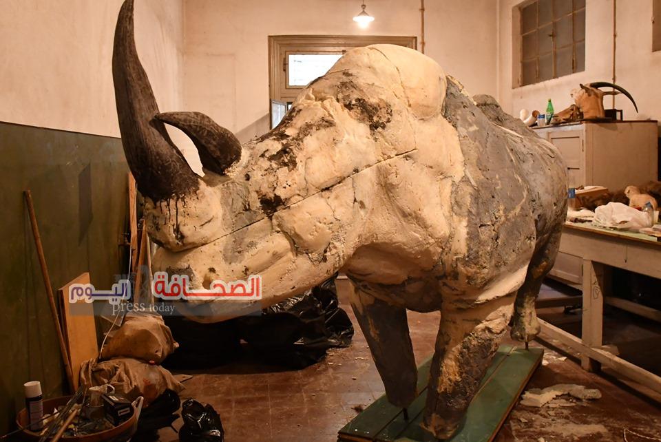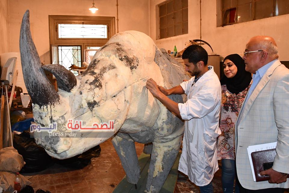 تفقد اللواء د. محمد رجائى عبد الحميد يونس رئيس الادارة المركزية لحدائق الحيوان ود. فاتن قابيل مدير متحف الحيوان بحديقة حيوان مجسم بالحجم الطبيعى لانثى الخرتيت الابيض النادر التى نفقت فى يناير الماضى لبلوغها سن الشيخوخة وقال اللواء محمد رجائى للصحافة اليوم بأن د. رامز ثابت قام بالاشراف على دباغة الجلد الاصلى لانثى الخرتيت الابيض وتصنيع المجسم الطبيعى المثبت على الهيكل العظمى ثم يغطى بالجلد الطبيعى الذى بمراحل دباغة حسب الفترة الزمنية لدباغة جلد ذلك الحيوان