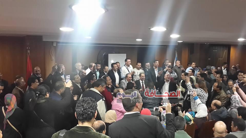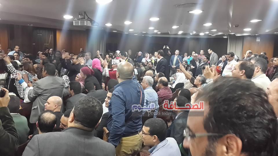 وهتف عبدالمحسن، وردد خلفه الحضور عاشت وحدة الصحفيين”.. وفي لفتة طيبة، تبادل يحيى قلاش وعبدالمحسن سلامة العناق والأحضان